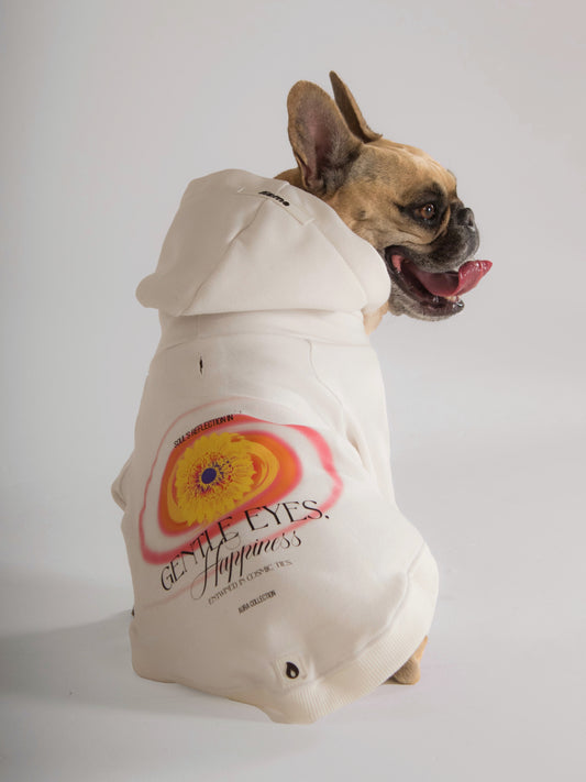 White Dog Hoodie - Happiness