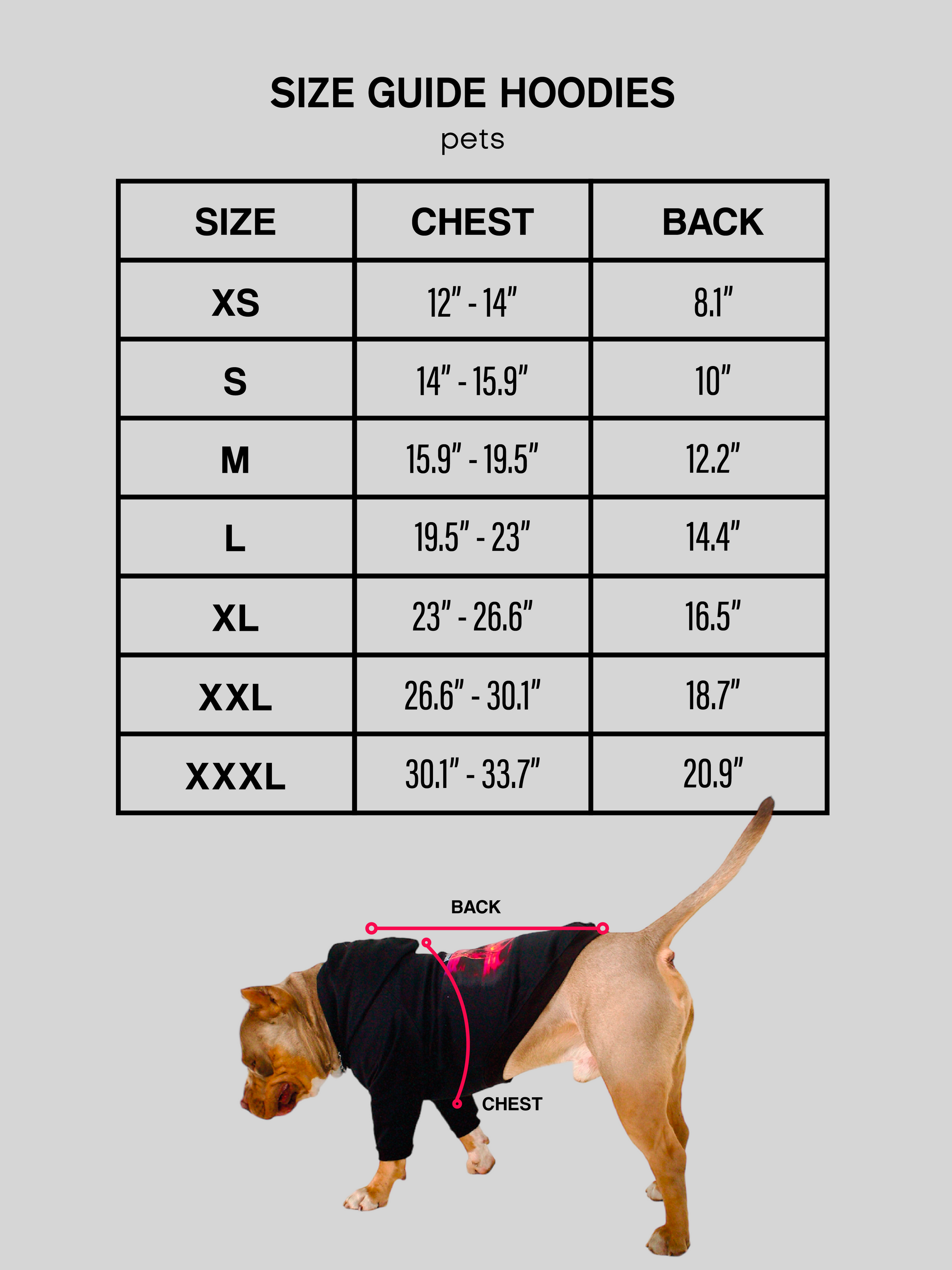 Dog and cat hoodie, made of high-weight brushed cotton (300g), featuring a front typographic design and a Streetwear Moon design centered on the back.